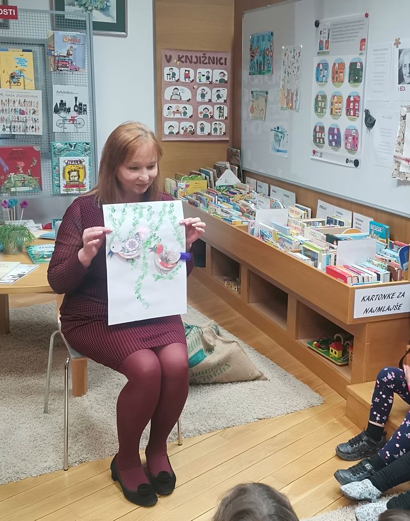 V skupini, ki je poslušala pravljico v Občinski knjižnici Polzela, so bili mlajši otroci, a vendar so razumeli stopnjevanje dogajanja na poti na sejem v mestu, kamor je kmet vodil konja, da bi ga zamenjal za nekaj koristnejšega. Na koncu se je vrnil z vrečo obtolčenih jabolk, a tudi z mošnjičkom zlatnikov …