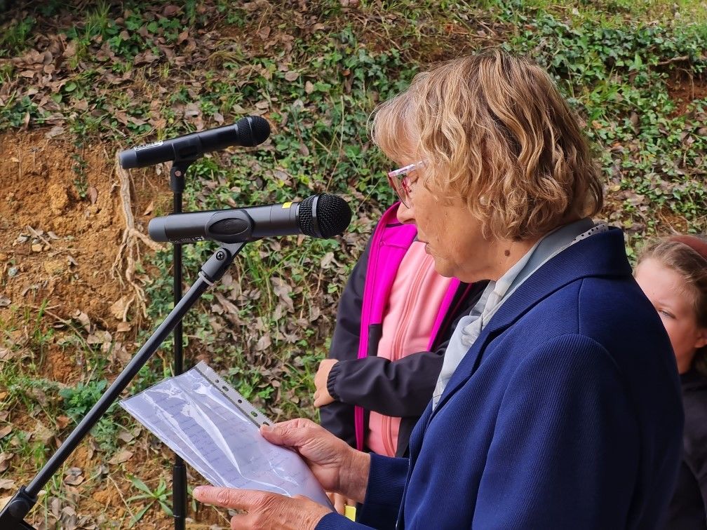 S svojo prisotnostjo na slovesnem dogodku nas je razveselila Nežina hči Eva Škofič Maurer, ki je skupaj z županom Jožetom Kužnikom prerezala trak in uradno odprla obnovljeno hišo.