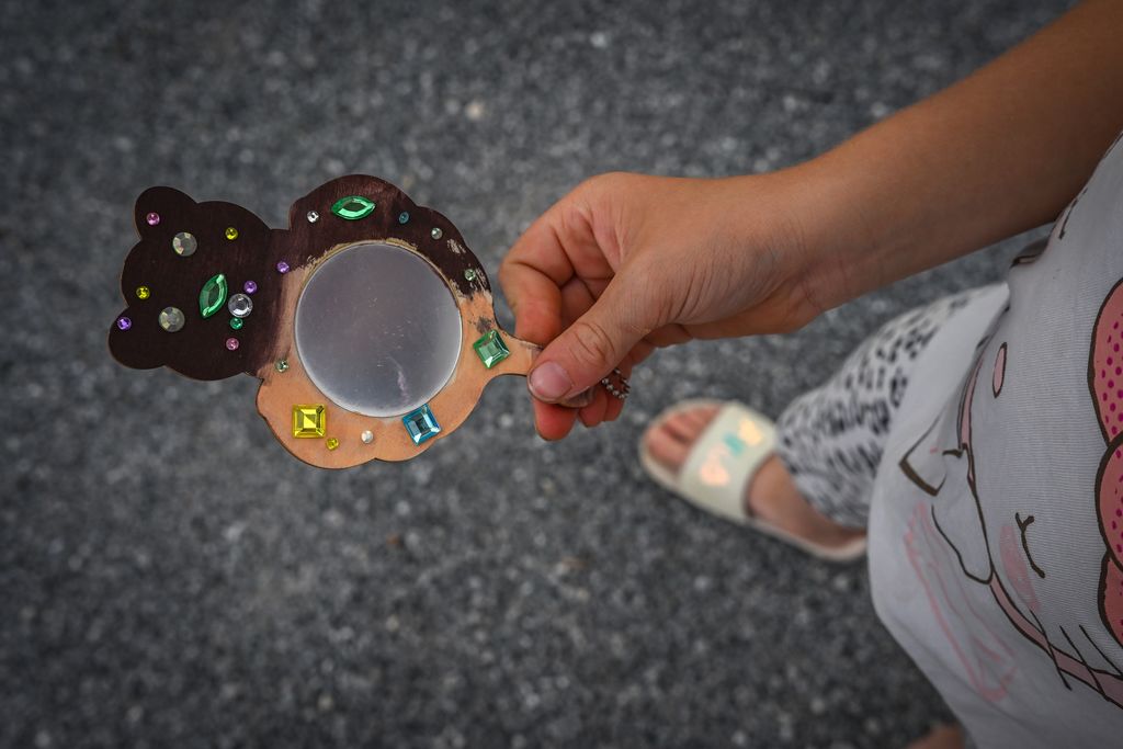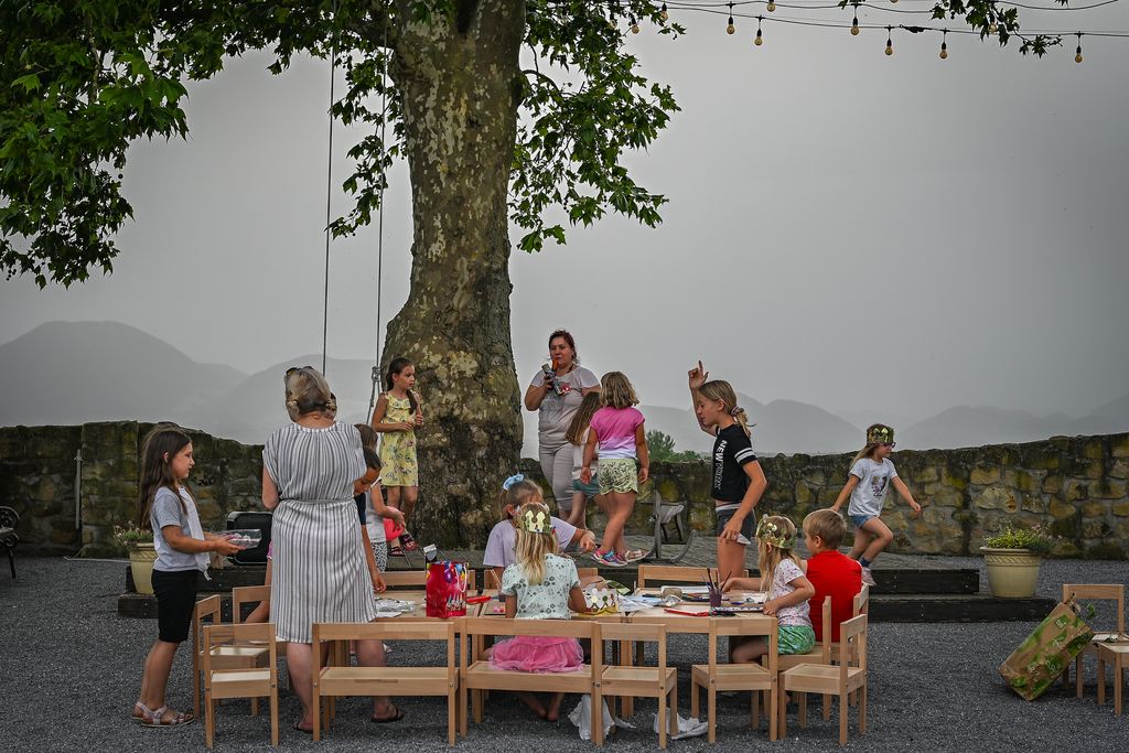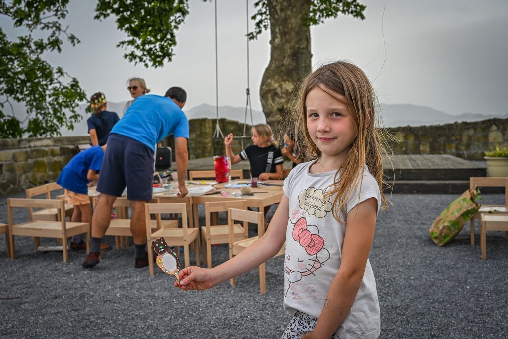 Dogodek smo začeli z lovom na zaklad. Otroci so prejeli zemljevid grajskega dvorišča in so morali poiskati osem skritih točk, ki so jih pripeljale do zmagovalnega gesla. Geslo jim je prineslo mali zaklad. Nadaljevali so z ustvarjanjem v grajski ustvarjalnici skupaj z Lejo in Vesno, ki sta pripravili izdelovanje kron, barvanje lesenih gradov, princeskina ogledalca, barvanje kar tako, izdelovanje grajskih svečnikov.