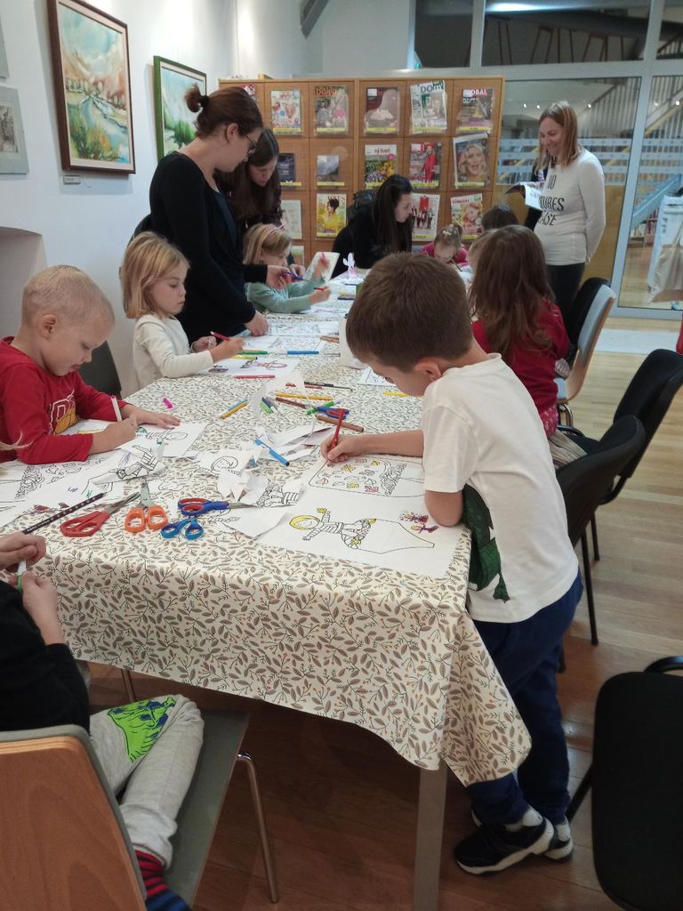 V četrtek, 26. oktobra 2023, so otroci prisluhnili slikoviti zgodbi izjemnih ustvarjalk Anje Štefan in ilustratorke Ane Zavadlav. V zgodbi so spremljali hudomušnega medveda, ki je imel nov prelep rdeč klobuk. A nekega dne mu ga je odpihnil veter.