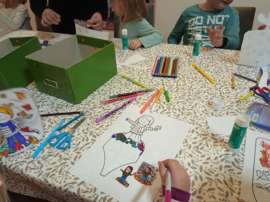 Bila je prisrčna zgodba o pomoči in prijateljstvu. O modrosti, da se prijaznost povrne s prijaznostjo. In spoznanju, da včasih pomaga tudi tisti, ki je ob pravem času na pravem mestu. Srečanje smo sklenili z barvanjem jesenskih aranžmajev.