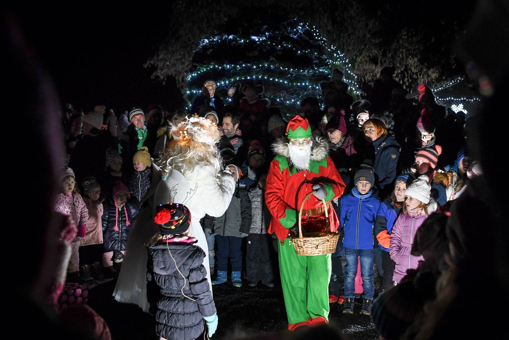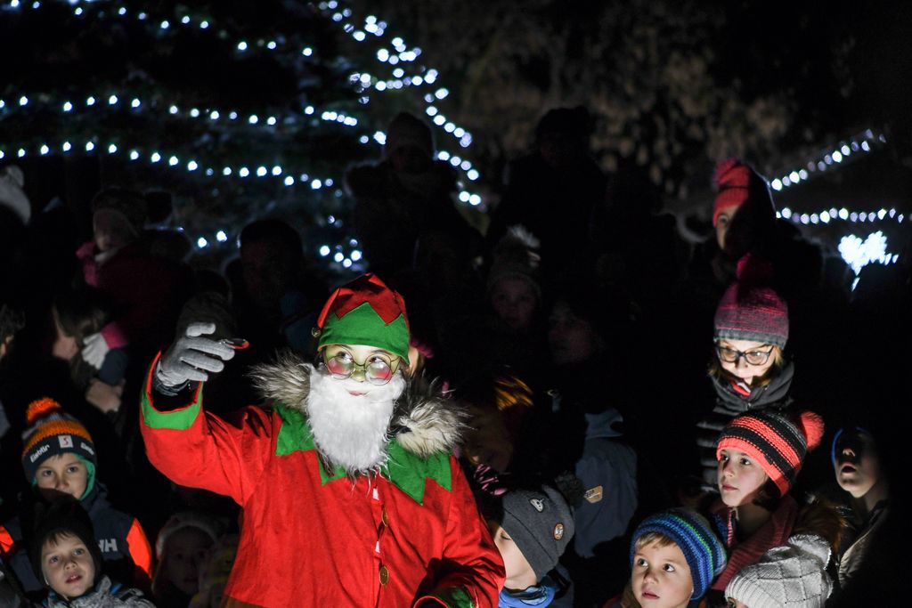 Obiskovalci so doživeli prižig lučk v čudovitem okolju sožitja narave in zgodovine. Najmlajši so se razveselili predstave Društva Dobra ideja. Nastopila je Zimska vila s palčkoma Godrnjavčkom in Zaspančkom ter jelenčkom Veselčkom. V predstavi je vila zapustila svoj puhasti oblaček, ki letos ni mogel narediti snega, da bi razveselil otroke. Ko je na Zemlji zaslišala  glasbo, se je odločila, da bo poiskala izvor teh lepih melodij. Našla ga je v parku Šenek. Tam je spoznala druščino in skupaj jim je uspelo pričarati sneg ter priklicati dobrega moža z darili.
