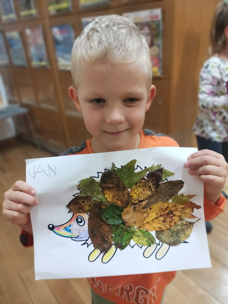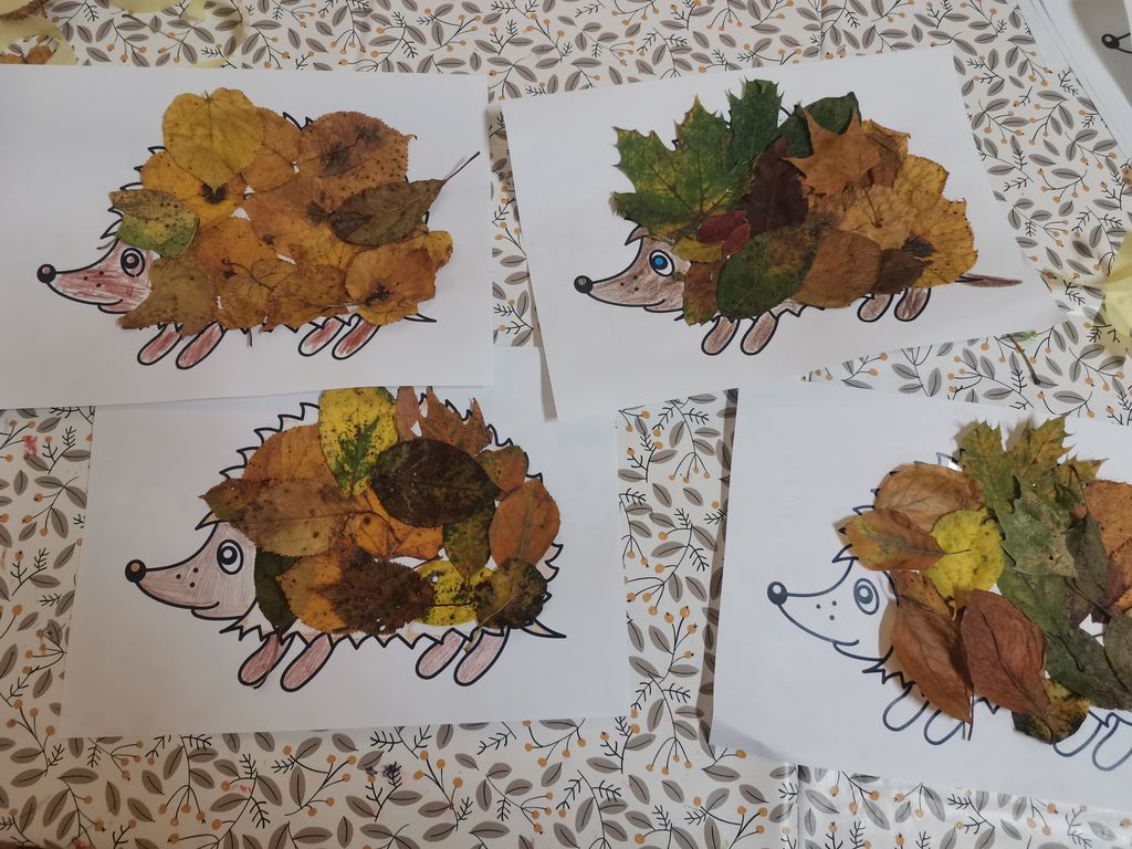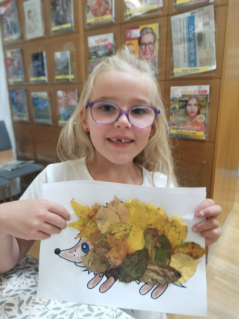 Tako smo po pravljici naredili svoje ježke in jim namesto bodic oblekli posušeno jesensko listje. Veselja in ustvarjalnosti je bilo ravno dovolj za prijetno jesensko popoldne.