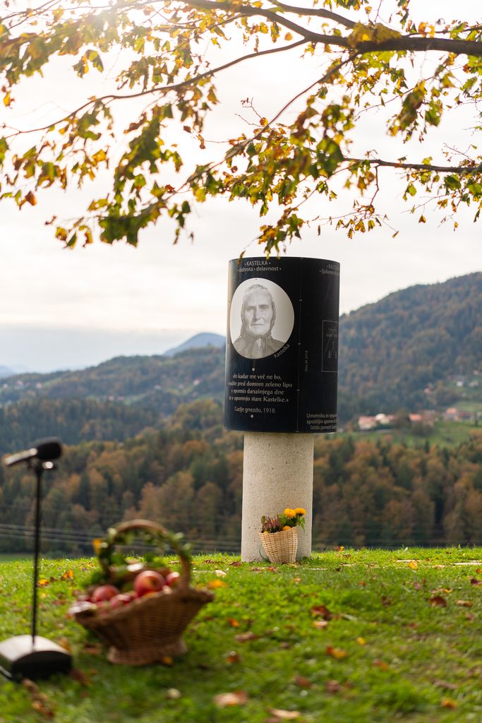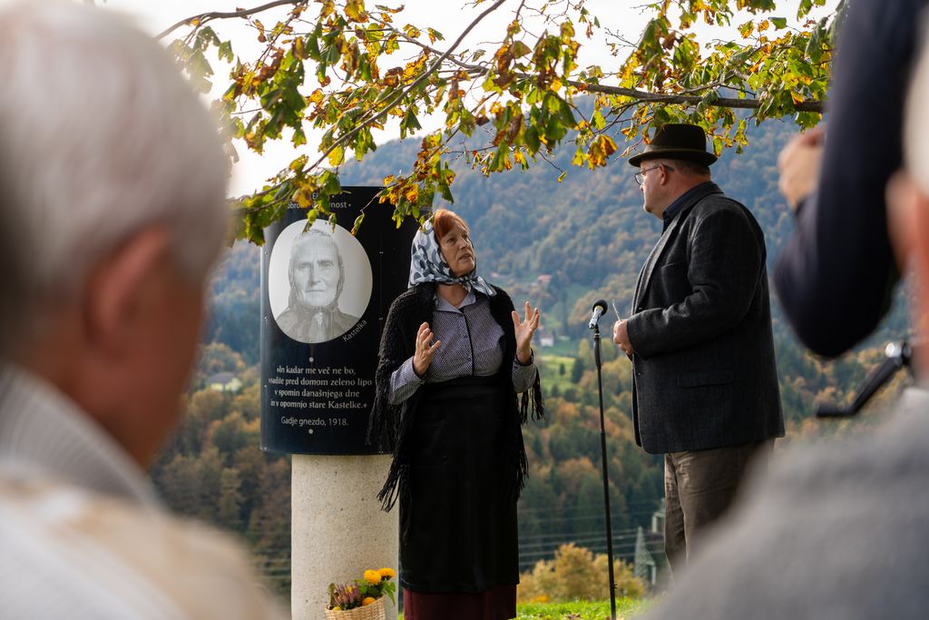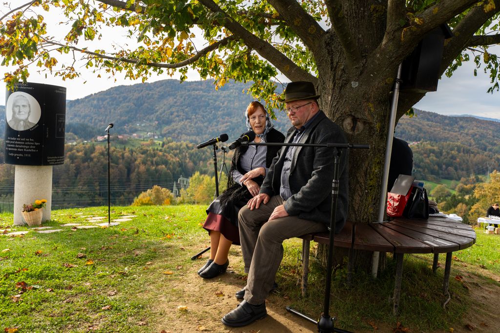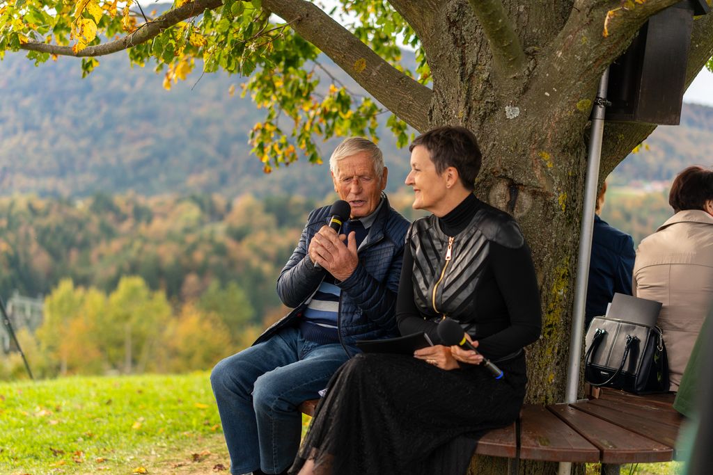 V nedeljskem popoldnevu, 13. oktobra 2024, pa smo se zbrali pod Jelovsko lipo, kjer smo imeli Goro Oljko kot na dlani. Pogled nanjo je vsakokrat veličasten in spokojen. Tako, kot je spokojno in veličastno na Jelovskem hribu, pod lipo, kjer nam lokacija nudi številna doživetja, prekrasne občutke in odlično počutje. Nedeljsko popoldansko druženje pod lipo so začeli Sonja Zajc, režiserka prizora iz Kastelke, in igralca gledališke sekcije Kulturnega društva Andraž Ivica Zabukovnik in Janez Dušič.