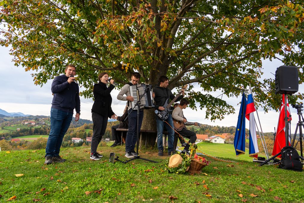 Predstavitev koščka zemlje pod Jelovsko lipo, ki bo zagotovo živel in nudil čutenje in doživljanje lepote tega edinstvenega prostora, je zaokrožil domač ansambel Zven gora.