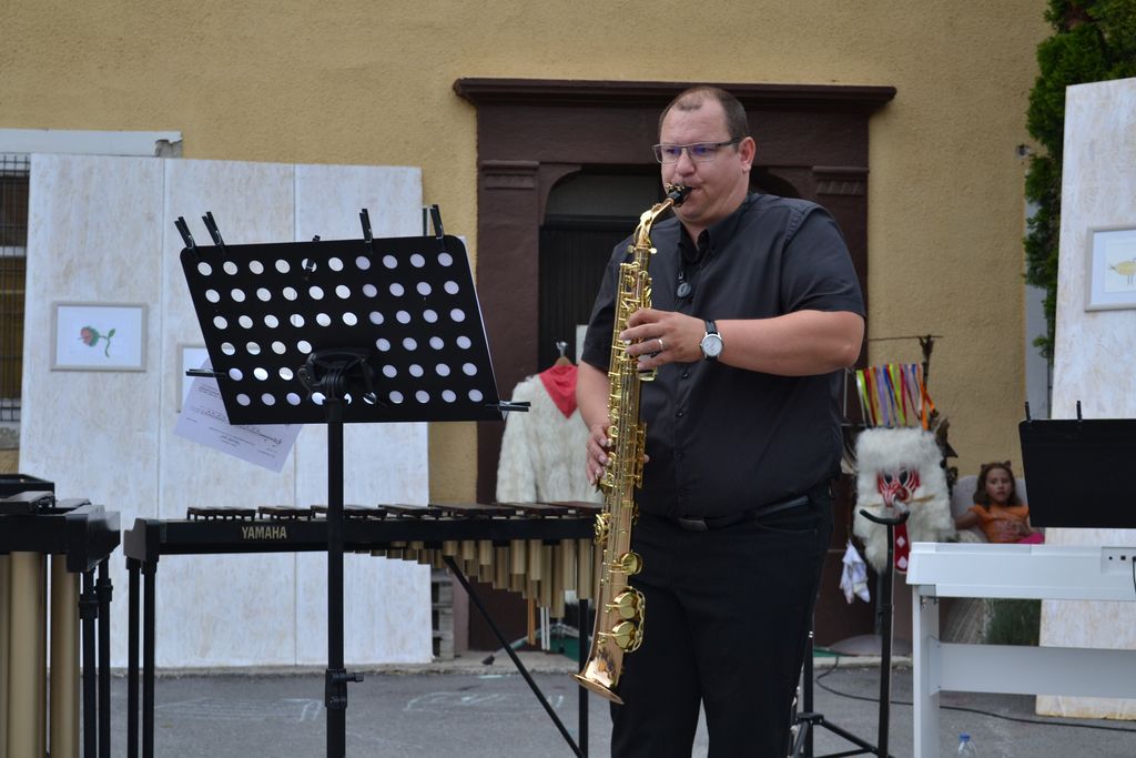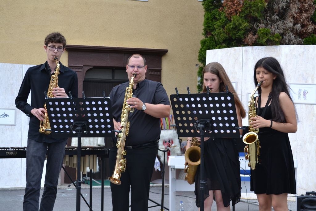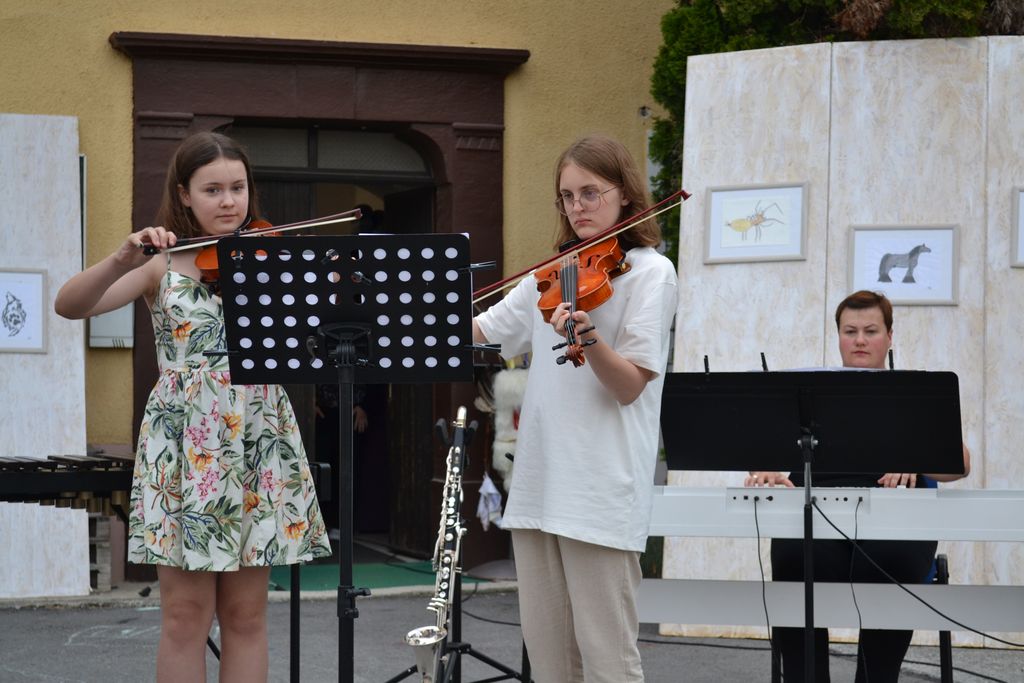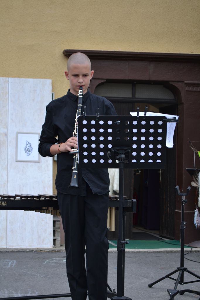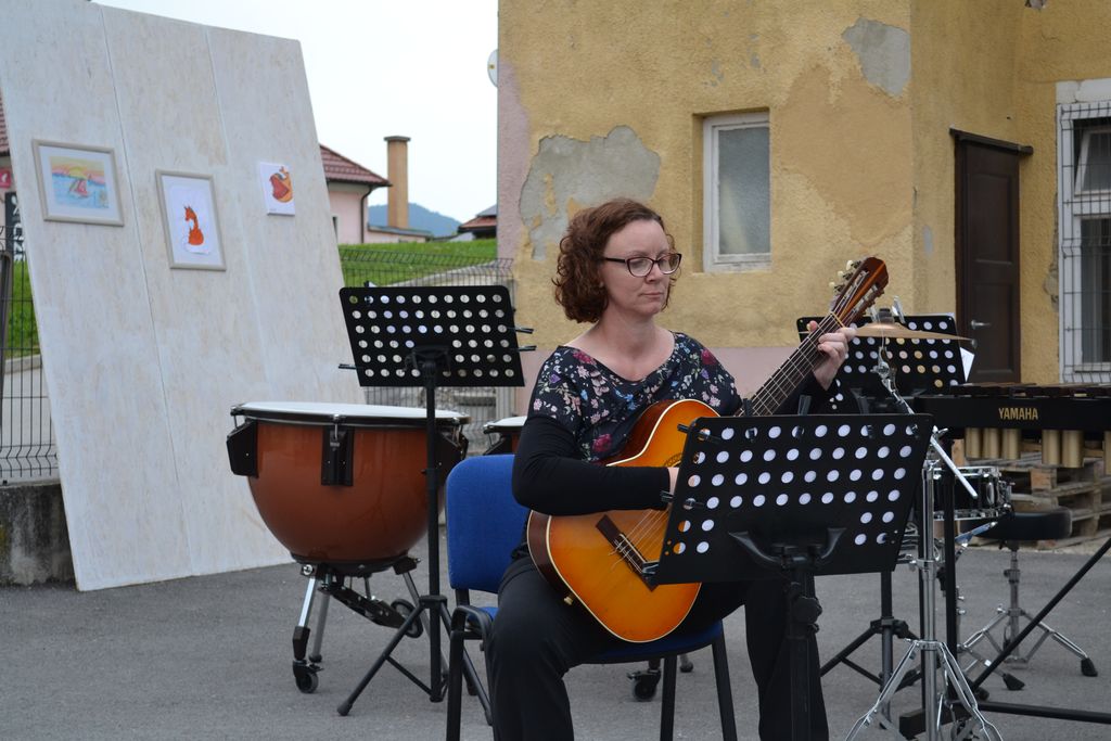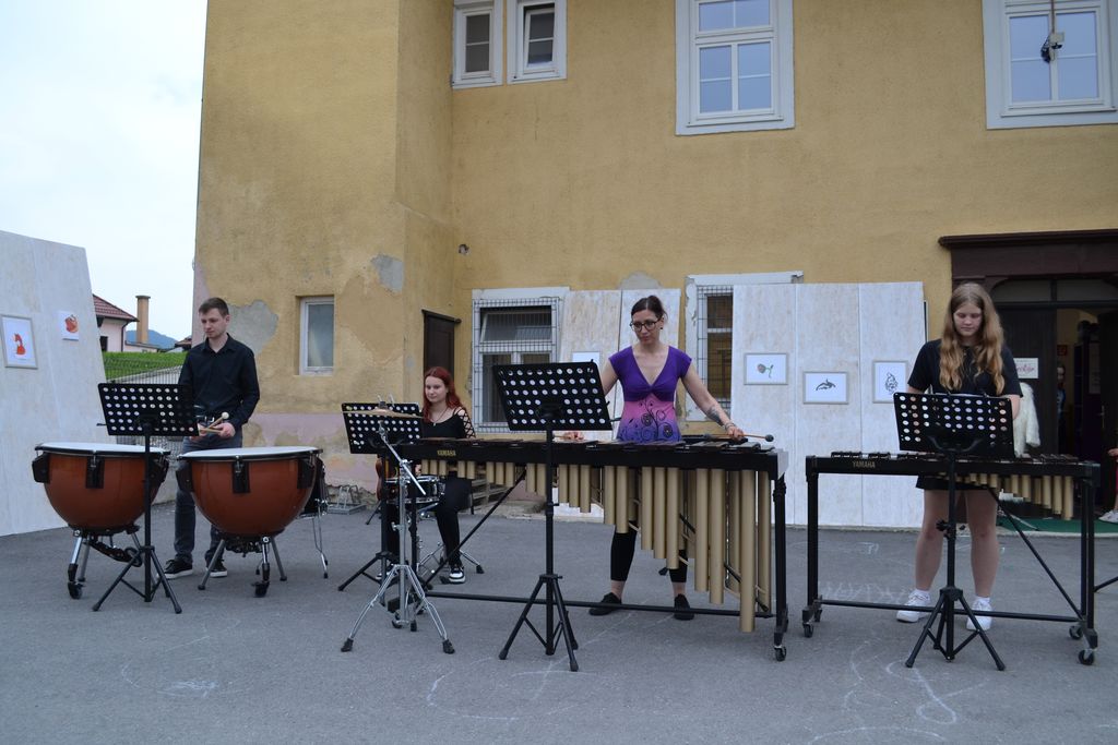 Na likovno-glasbeni razstavi se je predstavilo več učencev in učiteljev glasbene šole, ki so združili moči in nas popeljali v pravo glasbeno in likovno doživetje. Injine in Brinove slike so nam odstrle svet morskega psa, lisice, rib, mesojedke, pajkov, orke, psov, konjev in mitoloških pripovedk. Na dvorišču, ki je poskrbelo za prečudovito vzdušje, smo doživeli prekrasen večer.