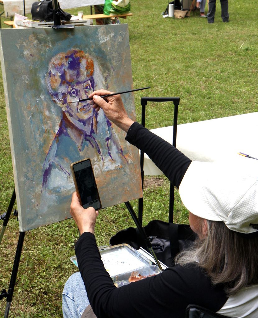 Skupina prizadevnih članov likovne sekcije je poskrbela za dobrote, da je celodnevno slikanje v objemu mogočne zgradbe in njeni okolici potekalo uspešno, polno navdihov, lepih idej in čudovitih doživetij. Za uspešno likovno delo je strokovno pomoč nudil izkušeni slikar in dolgoletni član likovne sekcije Vojko Kumer iz Oplotnice. Na popoldanskem zboru je podal komentar in navodila za dela, ki jih bodo likovniki dokončali doma.