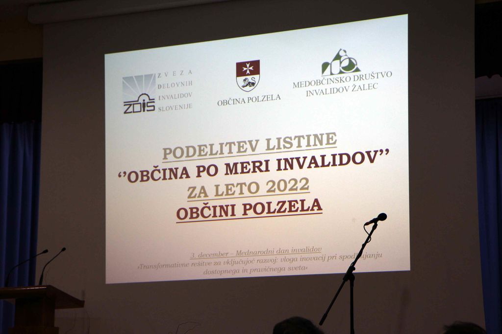 Občina Polzela je ob letošnjem dnevu invalidov ena izmed štirih slovenskih občin, ki je prejela listino "Občina po meri invalidov". Podpredsednik Zveze delovnih invalidov Slovenije Srečko Matkovič je ob tej priložnosti povedal, da se vedno znova razveseli tovrstnih podelitev, saj to pomeni, da je še ena v nizu slovenskih občin izpolnila vse pogoje in postala prijazna invalidom. »Naziv v času dneva invalidov, ki ga zaznamujemo 3. decembra, zveza podeljuje že 19. leto. Veseli me, da je Občina Polzela prepoznala ovire, se odločila, da jih bo odpravila, in to dejansko tudi storila. Ob tej priložnosti ji čestitam,« je povedal Matkovič.