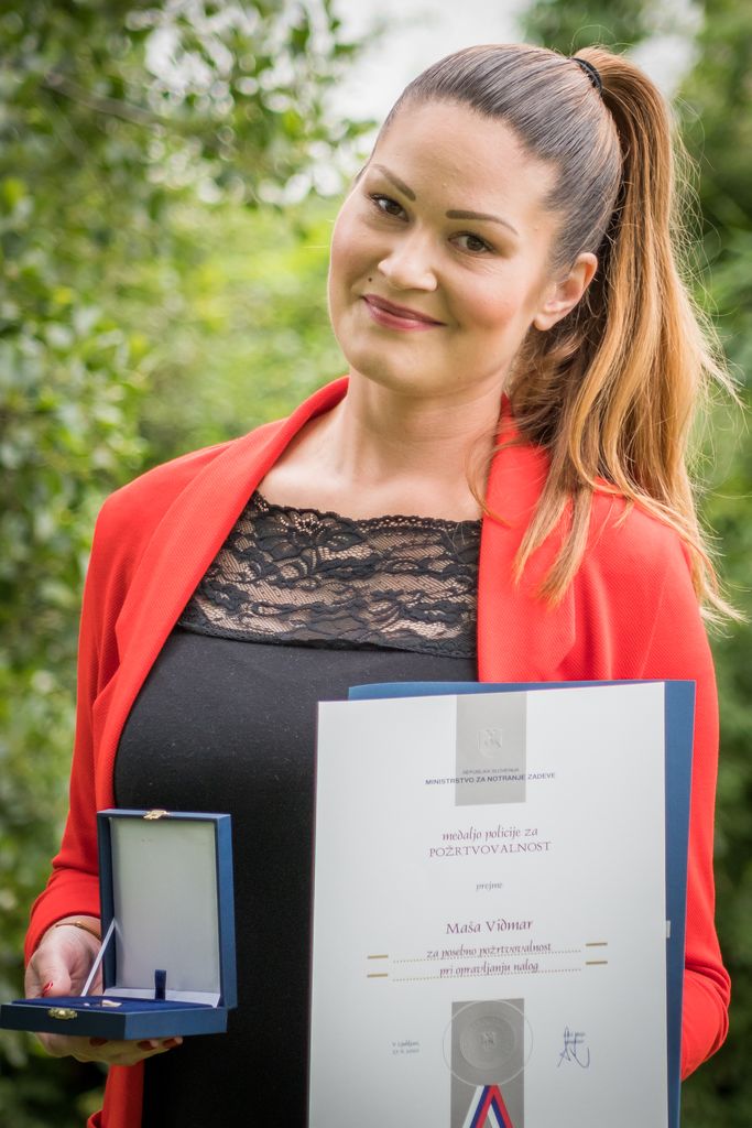 Takole so zapisali v uradnem zapisu: »Medaljo za požrtvovalnost prejme Maša Vidmar, ker je 22. avgusta lani policistom posredovala ključne informacije glede ropa zlatarne, na podlagi katerih so bili pozneje prijeti vsi trije osumljenci tega kaznivega dejanja.«