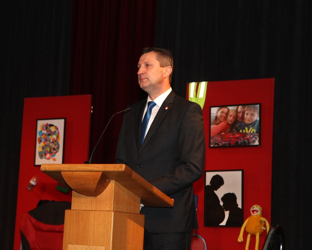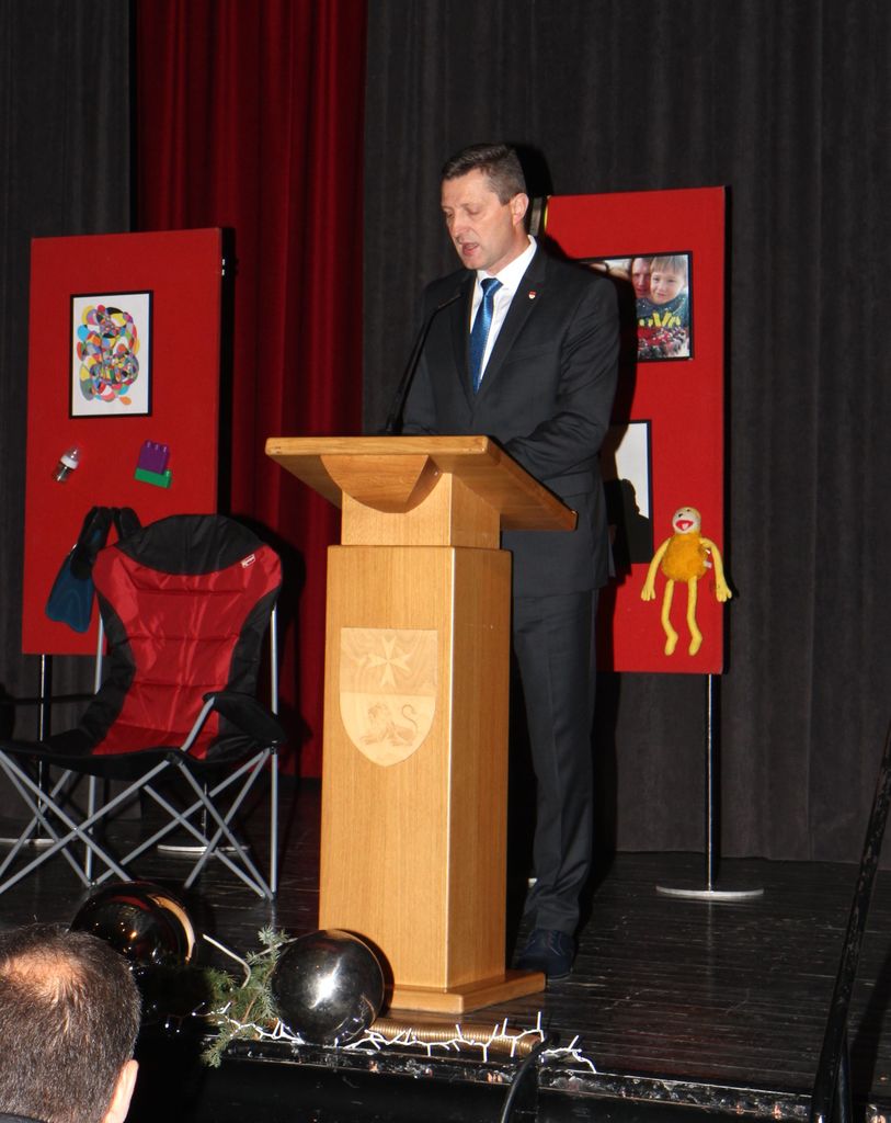 Župan je v svojem nagovoru omenil pomembnost grajenja in negovanja dobrih odnosov, sodelovanja, skupnega delovanja, pa tudi druženja in smeha. Zahvalil se je za dozdajšnje sodelovanje in uspešno izpeljane projekte ter vsem prisotnim zaželel mirne božične praznike, v prihajajočem letu pa zdravja, poguma, moči, vere vase in v druge.