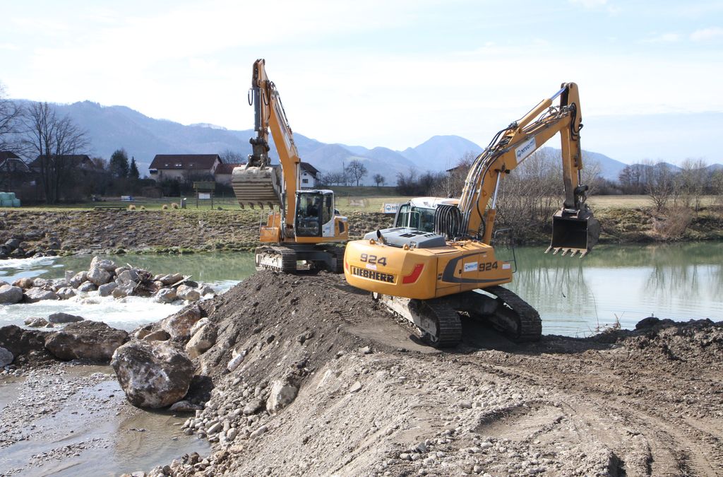 Na slikah: Dela pri sanaciji drče na Savinji v Ločici ob Savinji