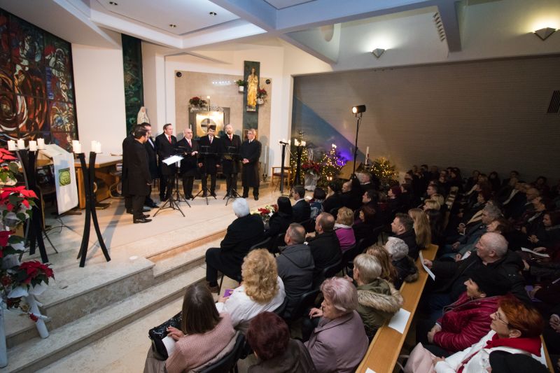 Tokrat smo v goste povabili reprezentativen slovenski moški vokalni komorni ansambel. Slovenski oktet, ki je prvič zapel leta 1951, od nekdaj predstavlja vzor in motivacijo mnogim skupinam, ki so prav zaradi njegovega plemenitega petja pričeli s svojim delovanjem, njihov umetniški vodja je Jože Vidic. Repertoar okteta je izjemno širok in raznolik, pri nas so se predstavili z božično tematiko in vsebino, katere del so izvedli ob orglarski spremljavi organistke Urške Vidic, del koncerta pa v A capella izvedbi.