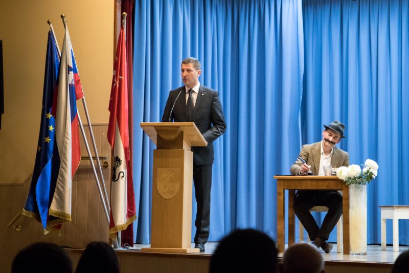 Slavnostni govornik župan Jože Kužnik je po uvodnem pozdravu dejal, da s svojo navzočnostjo vsakdo izraža poklon slovenski kulturi v najširšem smislu besede in vsem njenim odtenkom. Pogled je namenil v leto, ki je za nami, v Cankarjevo leto v kulturnem smislu, globalno in dojemljivo.