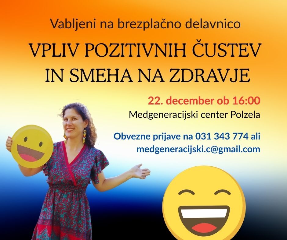 Prisrčno vas vabimo na interaktivno delavnico z Barbaro Završnik, certificirano trenerko za srečo in vaditeljico smejalne vadbe. Skupaj se bomo pogovarjali o načinih razmišljanja in delovanja, ki dvigujejo našo raven energije, dobro vplivajo na ljudi okrog nas in na dolgi rok občutno podpirajo naše zdravje in dolgoživost.