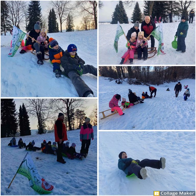 Toplo oblečeni ter opremljeni s sanmi in lopatkami za sneg so se zbrali v parku Šenek. Petnajst otrok so vzgojiteljice, planinski vodniki in markacisti Planinskega društva Polzela pospremili do Volčje jame, kjer je nastalo pravo sankališče. Otroci so uživali ob spuščanju po beli strmini, spremljevalci pa so poskrbeli za varnost. Vmes smo se okrepčali s toplim napitkom in malico iz nahrbtnika.
