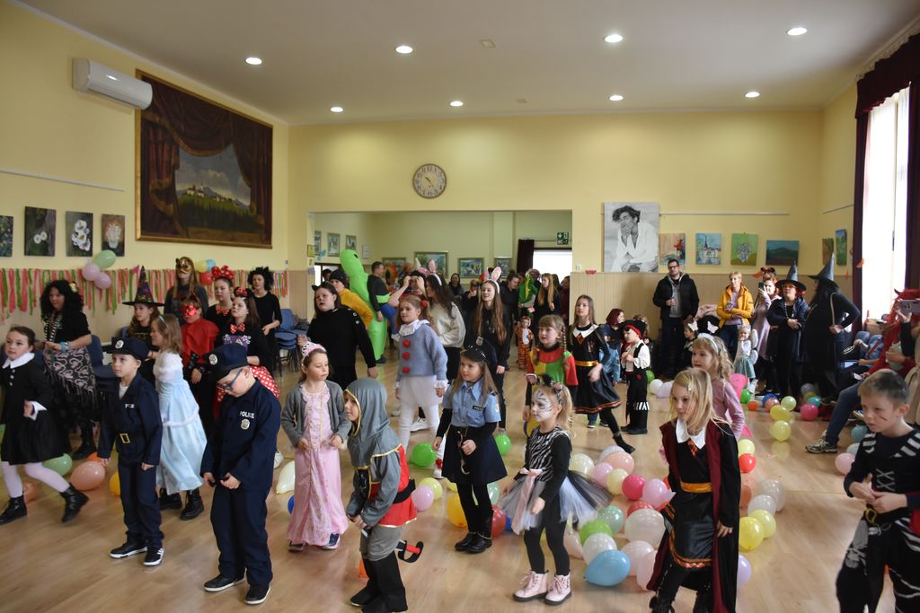 Pa so nas presenetili, saj so prišli policisti, pikapolonice, volkovi, vile, ciganke, Harry Potter in še kdo. Nasmejani in polni pričakovanja smo skupaj s Tinkaro Fortuna zaplesali in rajali. Pustno vzdušje smo popestrili tudi s slastnimi krofi.