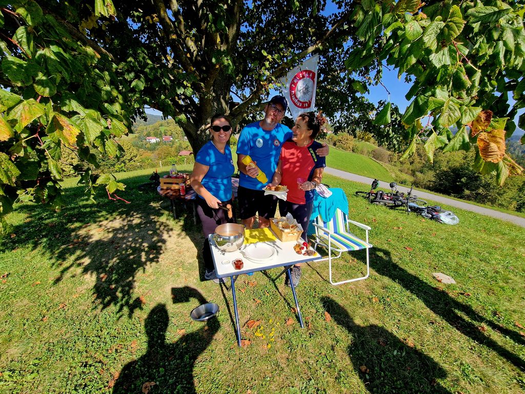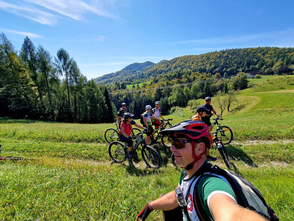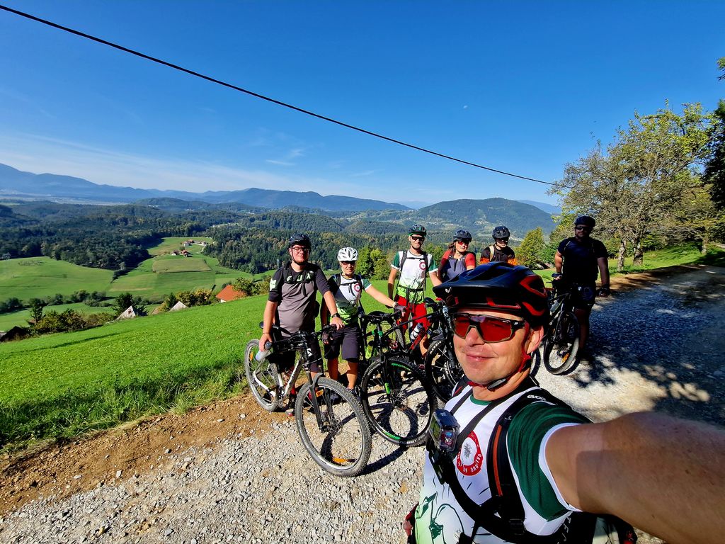 Prvotni načrt je predvideval vožnjo skozi sotesko Hotunjščice, a je ta še vedno neprevozna zaradi lanskih poplav. Tako smo se odločili za vožnjo po cesti do Podkraja in pod Brunškim vrhom do Lovč in naprej do Dobriča ter najvišje ležeče kmetije Rogeljšek v Občini Polzela. Od tam smo se povzpeli na najvišji vrh naše občine, Goro Oljko.