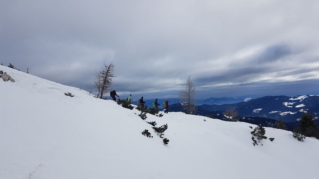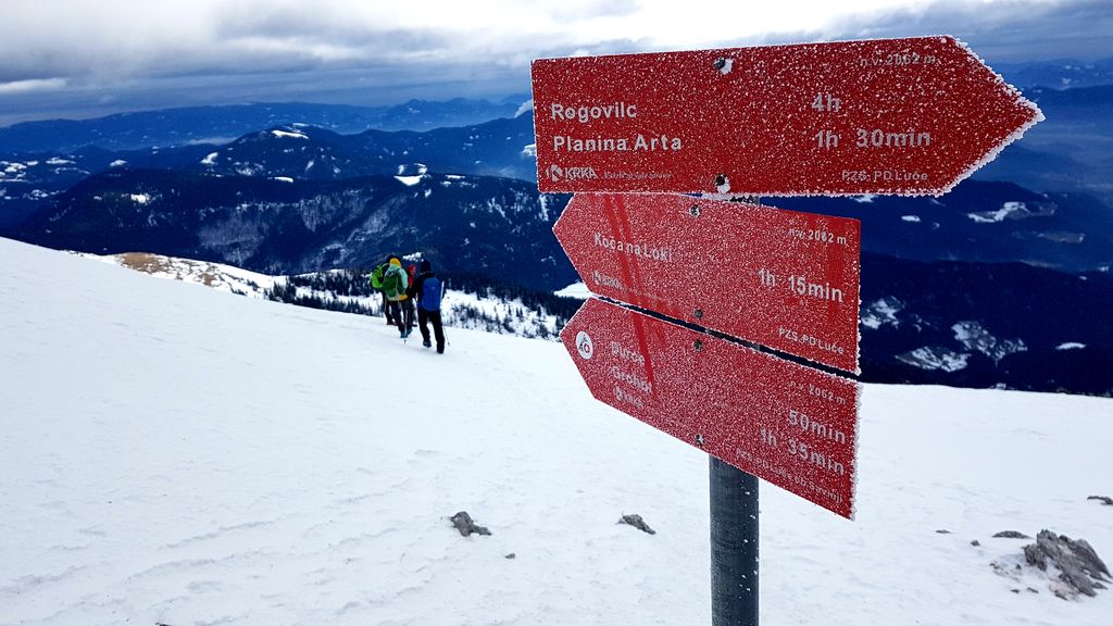 Tokrat smo vzpon začeli pri kmetiji Radušnik. Na začetku poti je bila pot še kopna, malo več kot 50 metrov višje pa nas je pričakala strnjena snežna odeja. Po skoraj uri hoje smo prišli do planinske koče na planini Loka, ki je bila zaradi slabše vremenske napovedi zaprta. Pri koči smo si nadeli dereze in nadaljevali po lepo uhojeni poti na vrh. Kljub delno oblačnemu vremenu smo imeli krasen razgled na vse strani. Zaradi vetra se na vrhu nismo dolgo zadržali in smo sestopili malo nižje proti planini Loka, kjer smo na primernem in varnem mestu izvedli vajo zaustavljanja s cepinom, ob morebitnem padcu ali zdrsu na strmem pobočju. Po uspešno izvedeni vaji smo sestopili do planine Loka in naprej do jutranjega izhodišča pri kmetiji Radušnik.