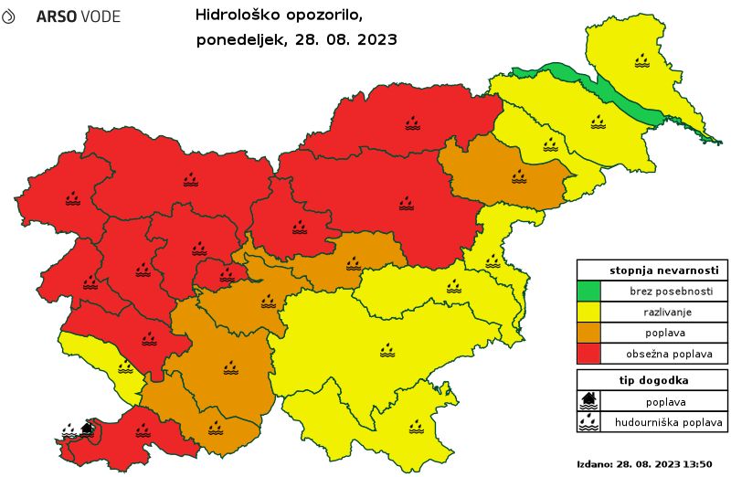Prosimo, da spremljate vremenska opozorila Agencije Republike Slovenije za Okolje (ARSO), opazujete razmere okrog vas in ravnate samozaščitno.