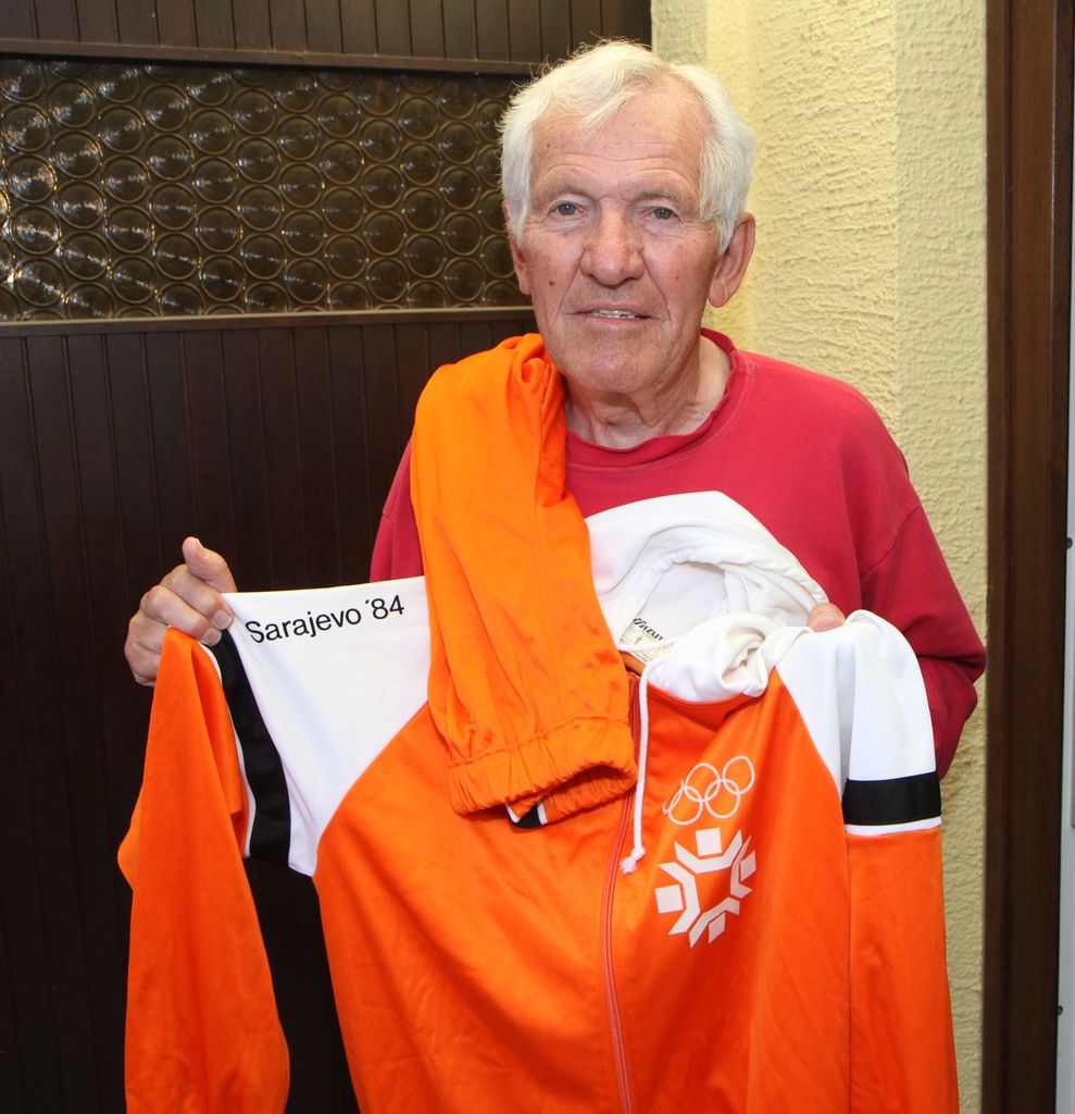 Slika 1 :Franci Naraks s trenirko, ki jo je imel takrat na sebi ob prižigu olimpijskega ognja v Žalcu.