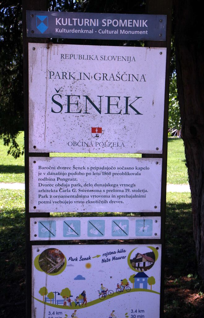 V središču Polzele se v neposredni bližini dvorca Šenek na čudoviti razgledni točki razprostira šeneški park. V naravnem okolju se prepletata kulturna dediščina in zelena rekreacijska površina. Leta 2022 je Občina Polzela uredila približno 500 metrov sprehajalnih poti z razsvetljavo, postavila otroško igrišče in manjše zeleno parkirišče.