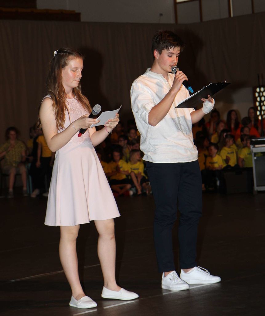 V hudomušne verze oblikovano vezno besedilo je pripravila Marija Kronovšek, interpretirala pa sta ga sedmošolka Loriana Turnšek in osmošolec Jure Lešnik, ki sta se v vlogi voditeljev odlično znašla, pri tem pa jima je pomagala mentorica Mojca Cestnik. Publika, ki je popolnoma zasedla mesta v polzelski športni dvorani, je prijetno spomladansko druženje pospremila s številnimi bučnimi aplavzi.