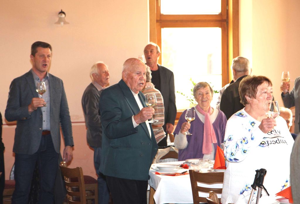 Zbrane - od več kot dvesto, ki jih živi v Občini Polzela, je na srečanje prišla dobra tretjina - je pozdravil podpredsednik Društva upokojencev Polzela Boris Turk. Zahvalil se je Občini Polzela za pomoč pri izvedbi srečanja in zaželel vsem, ki so na srečanje prišli, prijetno druženje, veliko zdravja … Z izbranimi besedami je zbrane nagovoril tudi župan Jože Kužnik, nato pa so skupaj nazdravili in zapeli pesem Kol'kor kapljic, tol'ko let, Bog nam daj na svet živet'. Sledilo je nedeljsko kosilo.