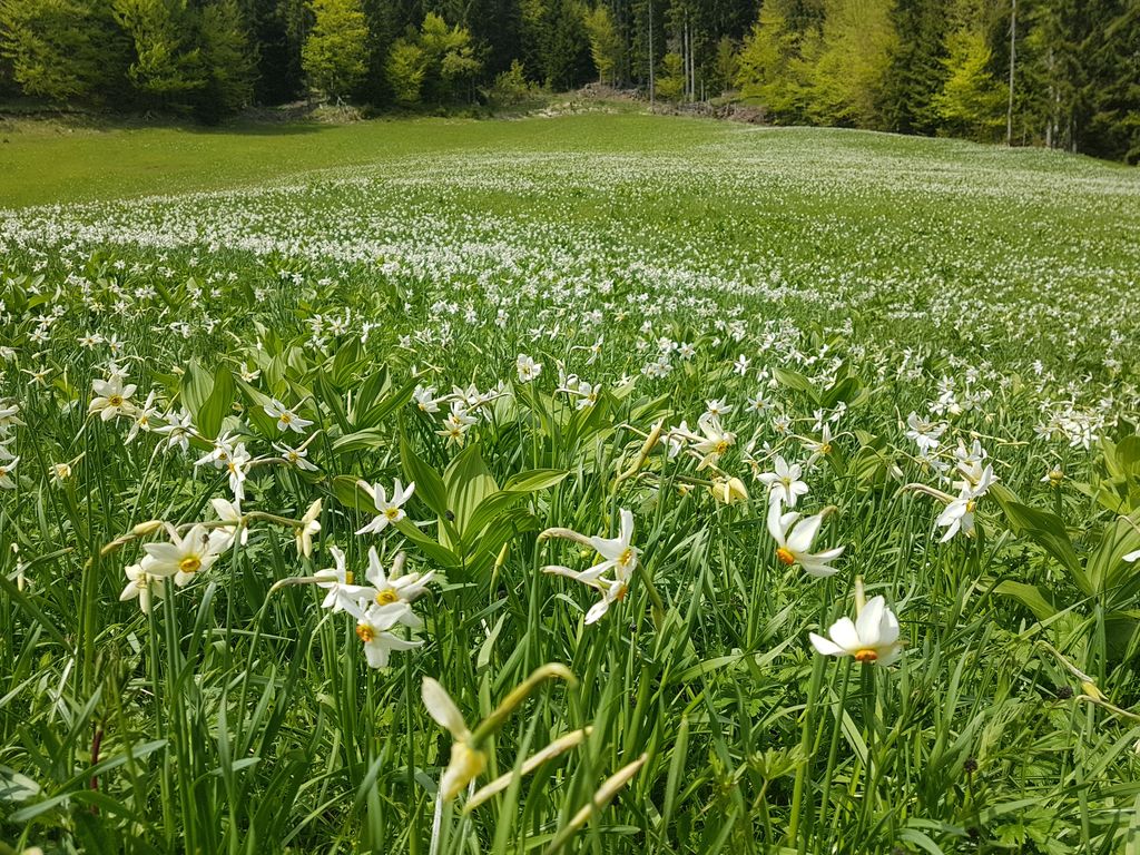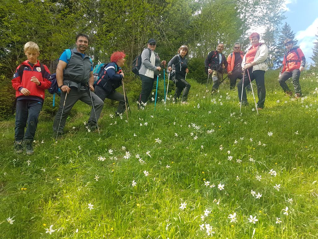 V nedeljo, 30. maja 2021, smo polzelski planinci (15 pohodnikov) končno izvedli načrtovani izlet na Golico (1835 m). S Polzele smo se z avtomobili odpeljali do Jesenic, od koder je organiziran prevoz z avtobusi do Planine pod Golico, kjer smo začeli pohod. Povzpeli smo se do Savskih jam in Korelnovega rova ter po stari rudni poti do koče na Golici. Že na začetku poti smo opazili, da smo letos malo prezgodaj prišli občudovat travnike s cvetočimi narcisami, saj se je narava zaradi obilnih količin snega šele dobro začela prebujati. Tako je bil naš trud na višinskih travnikih poplačan s cvetočim resjem, telohom, avrikljem in na osojni legi z narcisami. Na koči smo si malo oddahnili in se povzpeli še na vrh Golice, ki je bil na avstrijski strani še povsem zimski, razgledi pa fantastični na vse strani. Zaskrbljeno smo pogledovali proti Julijcem, ki so v našem načrtu konec junija, saj je snega po vrhovih še ogromno. Z vrha smo sestopili nazaj do koče, kjer smo tokrat naredili daljši premor in se okrepčali, nato pa sestopili po stari opuščeni poti mimo Koče pri Fencu, ki pelje čez spodnje travnike, in končno občudovali bele travnike cvetočih narcis. Sledil je le še krajši sestop do avtobusnega postajališča in nato vožnja proti domu.