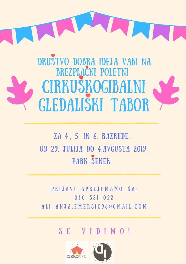 #DruštvoDobraideja, skupaj s #Cirkokrog pripravljamo nekaj neverjetno svežega na Polzeli. Ker so najboljše stvari v življenju brezplačne, boste tudi pri nas deležni le najboljšega znanja in norčij dveh mladih, izkušenih, vrhunskih umetnic - Enje in Marije Fride. Prijavite se na: POLETNI CIRKUŠKO-GIBALNO-GLEDALIŠKI TABOR.