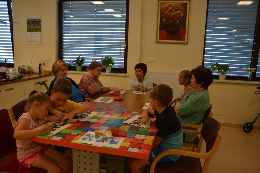 Naslednje leto smo ga ponovili in ga dodali na seznam dodatnih ukrepov, ki nam je skupaj s še nekaterimi ukrepi omogočil, da smo lani prejeli polni certifikat družini prijaznega podjetja. Otroci so tako v tednu od 1. do 5. julija 2019 in od 19. do 23. avgusta 2019 preživljali počitnice v medgeneracijskem druženju z našimi stanovalci. Skupaj z njimi so telovadili, igrali tombolo, kegljali, barvali in risali. V kuhinji so pekli piškote, v dnevnem centru so igrali družabne igre in ustvarjali ter si ogledali film. Nekaj časa pa so preživeli tudi zunaj Doma, saj so se peš odpravili na Vimprek, na Polzeli so jezdili konje ter se v plezalnem centru v Celju preizkusili v plezanju. Z novimi izkušnjami in polno mero pozitivnih vtisov smo se poslovili in si obljubili, da se ponovno srečamo naslednje leto.