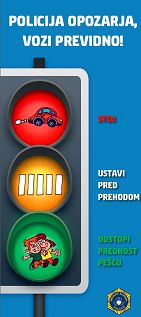 - Cesto lahko prečkajo samo na prehodu za pešce in pri zeleni luči na semaforju za pešce v primeru semaforiziranih prehodov.