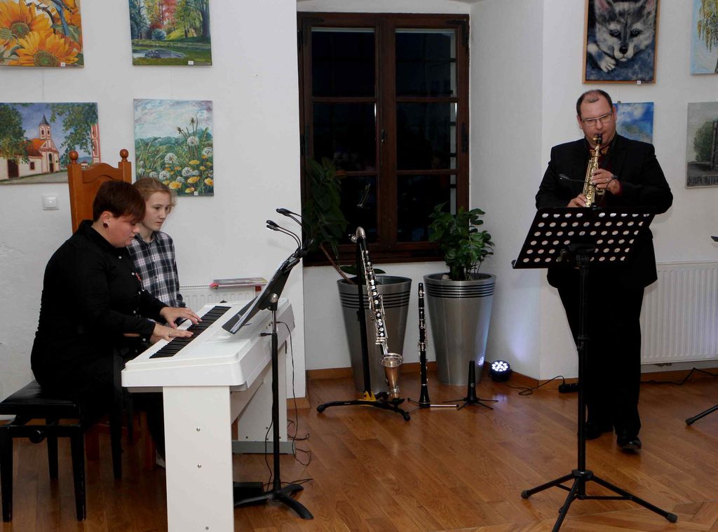 Z glasbenimi gosti, trobilci Iztokom Balohom, Bogdanom Železnikom, Jakobom Florjancem ter Žanom Florjancem, ki so koncert z mogočnimi fanfarami tudi začeli, ter flavtistko Evo Černec in pianistko Meto Podbregar, s katerima je skladatelj izvedel šest skladb (glasbene skice na temo pesmi iz Ljubezenskega triptiha, knjige Neže Maurer), se je kot solist na redkeje slišanih glasbilih, kot sta sopranski saksofon in basovski klarinet, virtuozno predstavil tudi skladatelj sam.