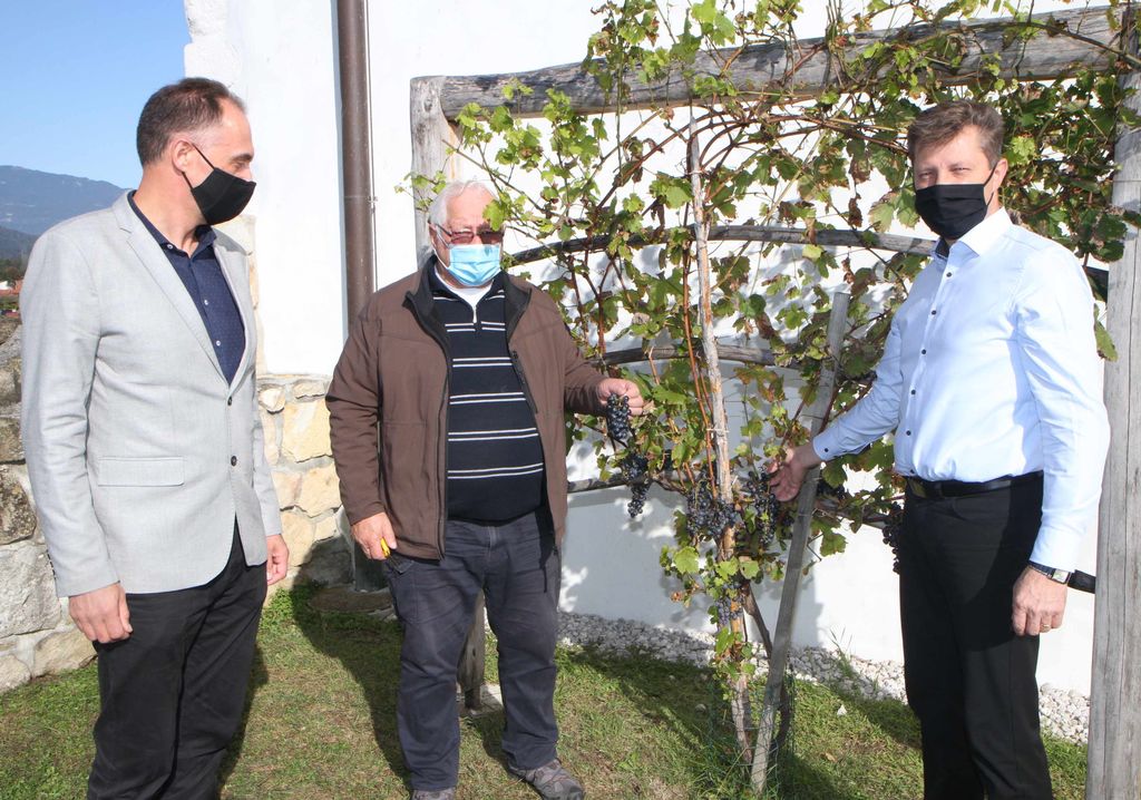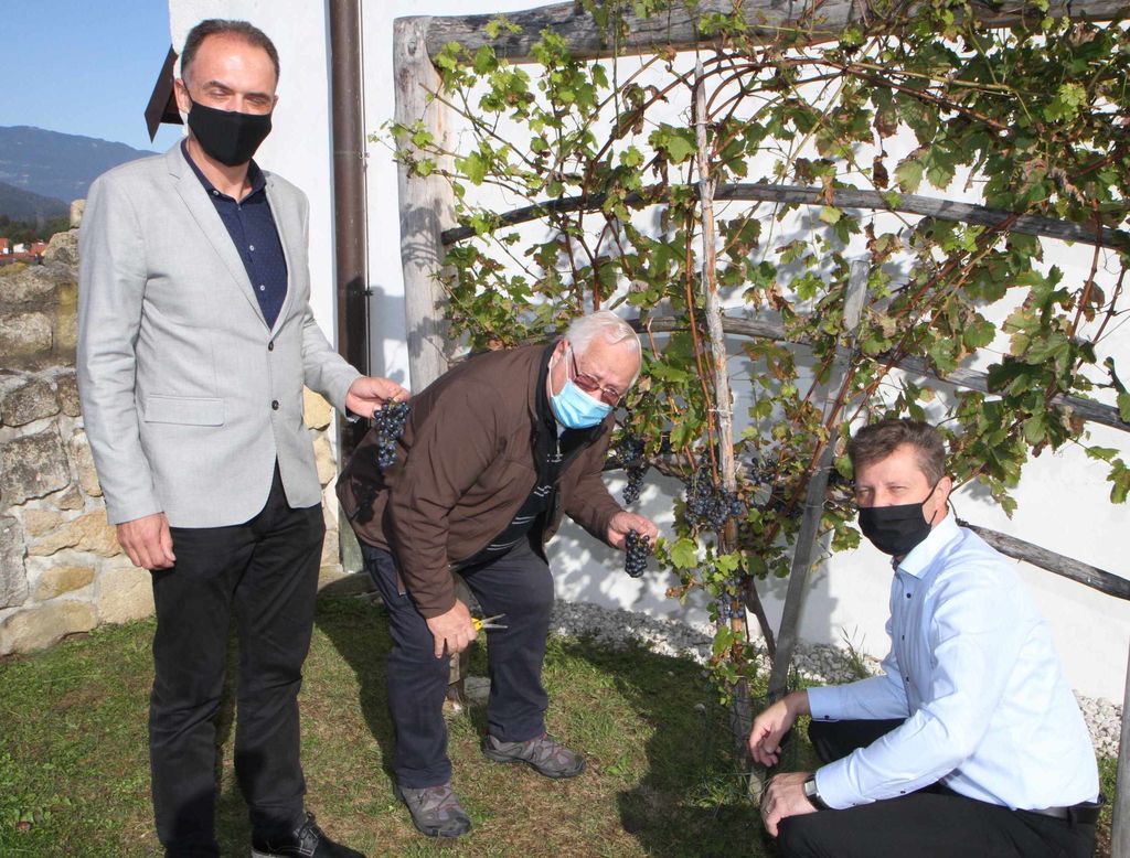 Trgatev smo opravili (od leve proti desni): Damjan Jevšnik, vodja TIC Polzela, Rudi Cevzar, oskrbnik stare trte, in Jože Kužnik, župan Občine Polzela.