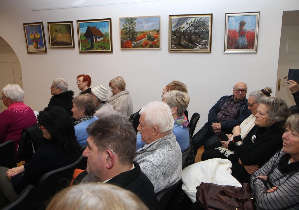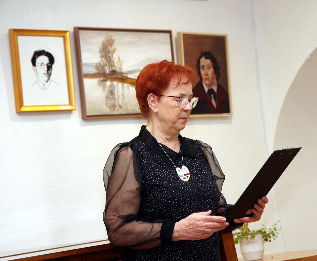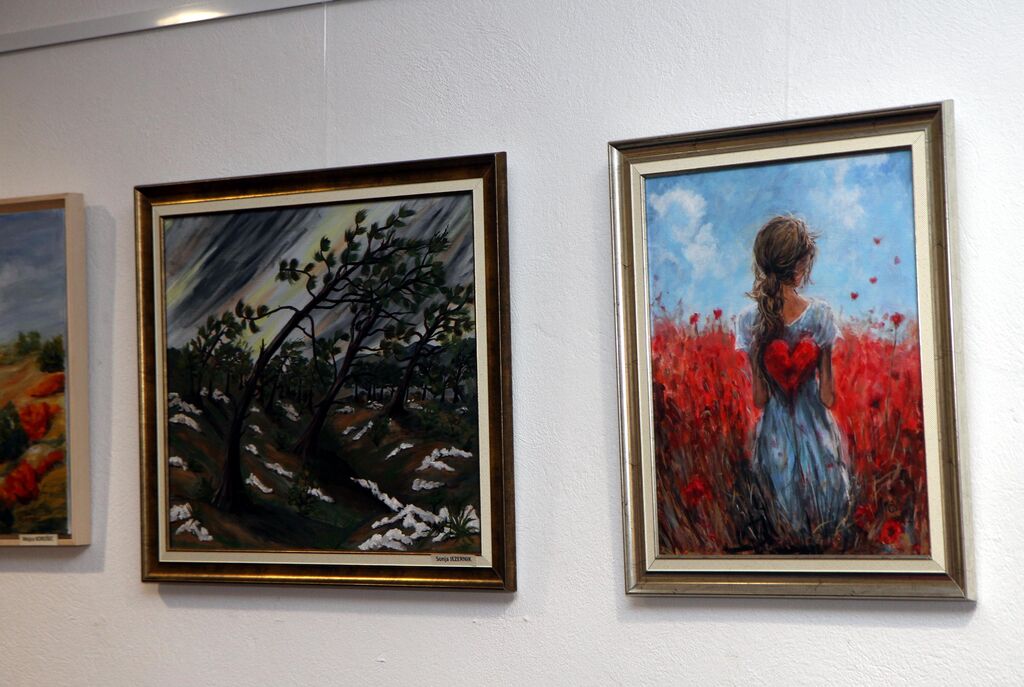 Pred začetkom odprtja razstave so se z minuto molka poslovili od nadvse spoštovane članice likovne sekcije Ide Jevšnik.