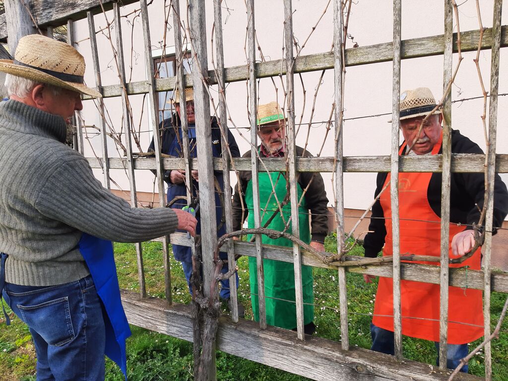 V Andražu nad Polzelo sedaj obstaja kar nekaj vinogradnikov, ki skrbijo za svojo strokovnost in pridelavo dobrih vin različnih sort. Na letošnji Martinovi pokušnji njihovih vin pod okriljem Društva upokojencev Andraž, sem jim spomnil na pomembnost obstoja potomke najstarejše trte v Sloveniji. Obljubili so, da bodo potomki dali svoj pomen. Prvo opravilo – rez je že tu in vidno iz posredovane slike. Pri rezi so sodelovali Anton Mešič, Slavko Pižorn, Emil Medvešek in Mirko Meh.