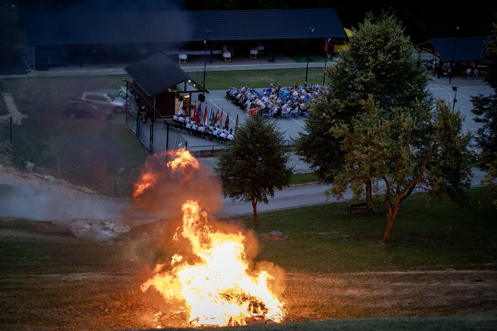 Slovesnost smo zaključili s koračnico, ob kateri so zbrano in ponosno s prizorišča odkorakali praporščaki pod poveljstvom Davida Krka. S tem simboličnim dejanjem so ponovno izkazali spoštovanje in čast prazniku. Večer se je sklenil s prižigom kresa, ki je v vseh nas prebudil občutek povezanosti, domoljubja in ponosa do naše domovine.