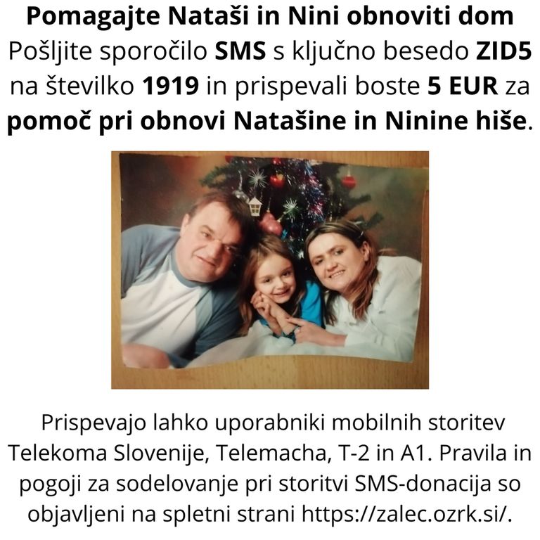 Pošljite SMS z besedo ZID5 na številko 1919 in darujte 5 EUR