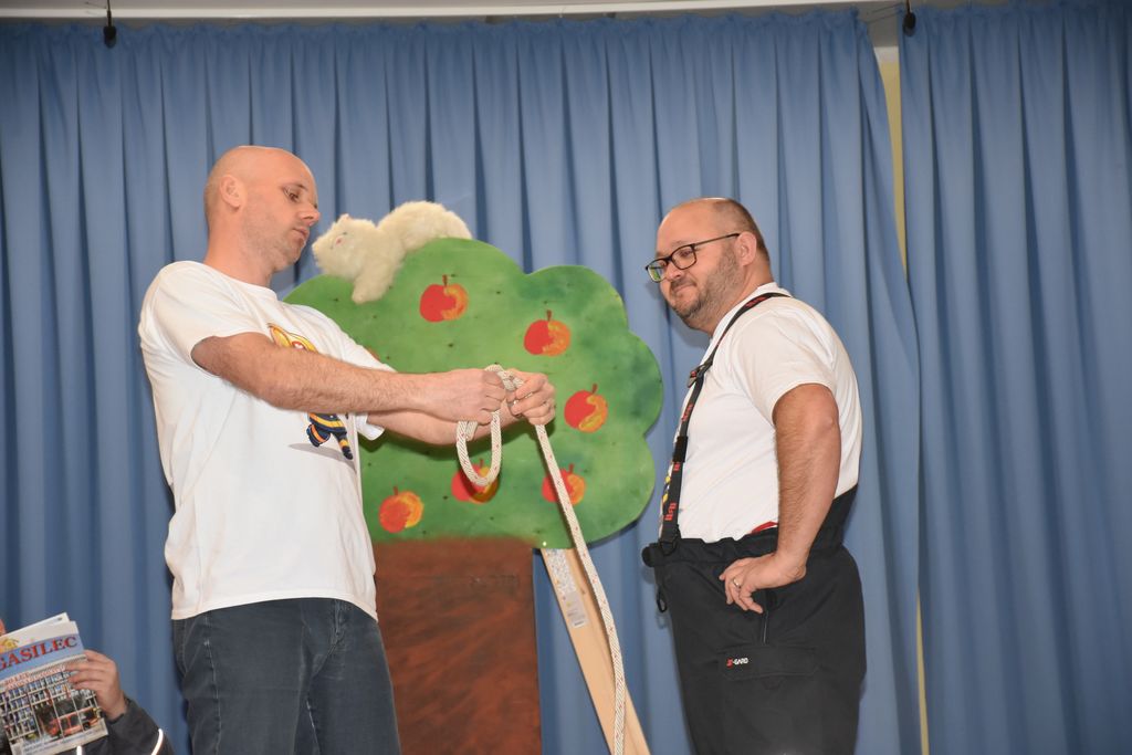 Zgodba govori o mladi predani gasilki Maji, ki svojega prijatelja Jana navduši, da se jim pridruži pri gasilcih. Že takoj je priča prvi pravi gasilski intervenciji, ki so jo ustvarjalci predstave otrokom približali s čisto pravo gasilsko opremo, dimom, vodo in še čim. Pika na i so bili zagotovo zvočni efekti. Ob sireni ne manjkajo tiste čisto prave in vsem dobro znane gasilske pesmi, ki so odmevale še po koncu predstave, ko je v Domu krajanov sledilo prijetno druženje. Da je bilo tudi sladko, so poskrbele domačinke, ki so za mlade obiskovalce napekle različne sladke dobrote.