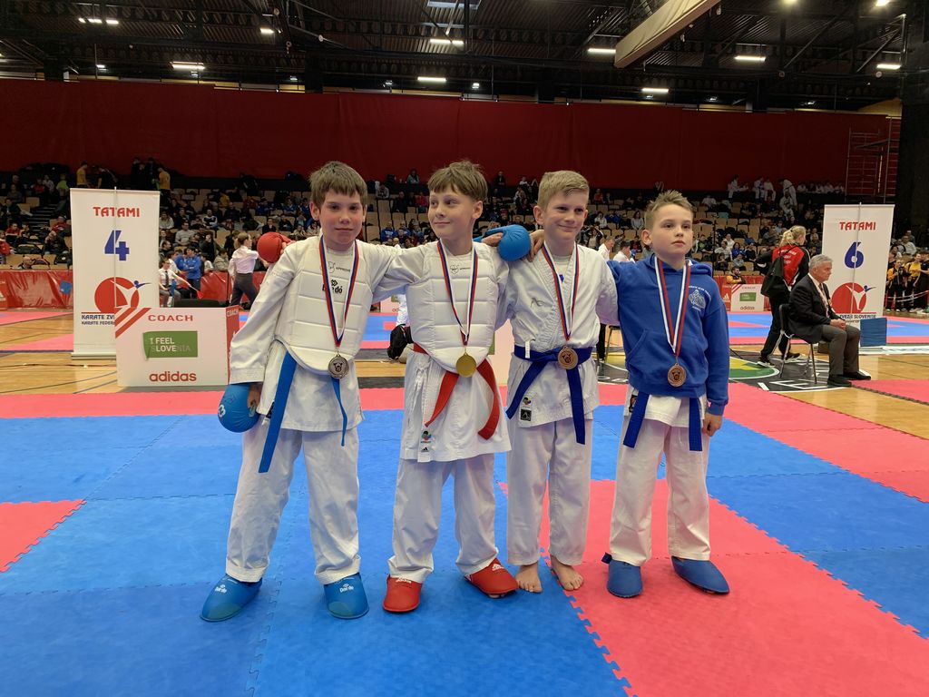 3. mesto: Žiga Bašić (malčki, -26 kg), Nino Mlakar (ml. kadeti, +55 kg), Mia Pratljačič (malčice, -28 kg) in Julija Rožič (kadetinje, -61 kg).