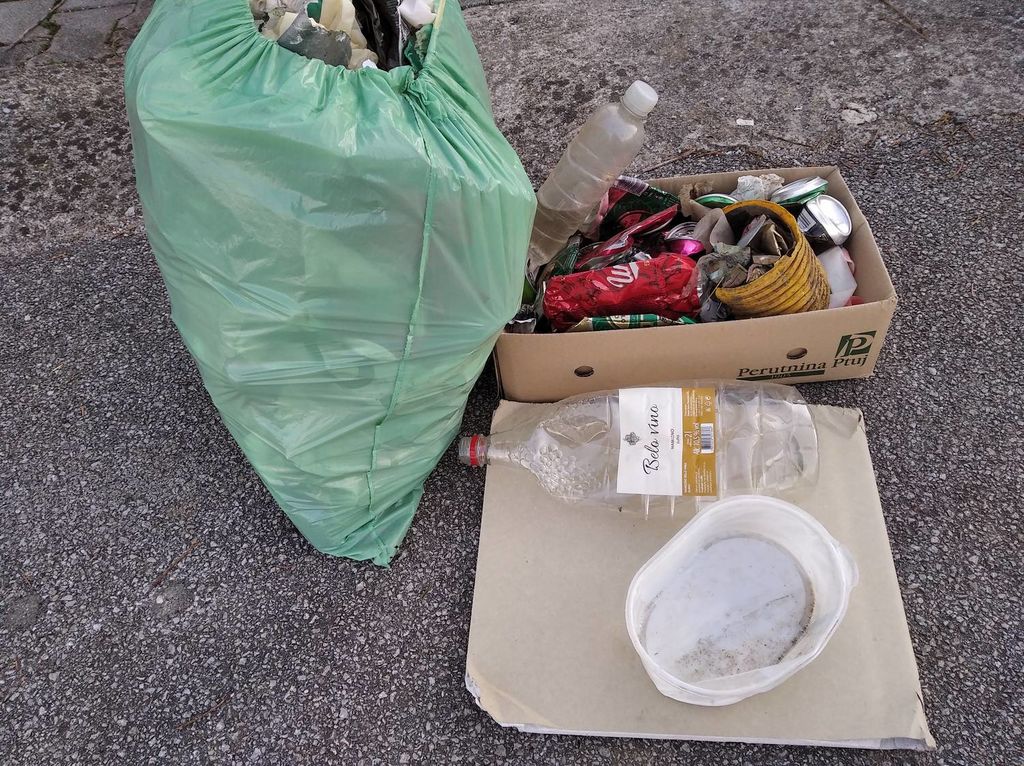 pločevinke piva, cigaretne škatlice, folije, plastenke, umazani robčki in še kaj.