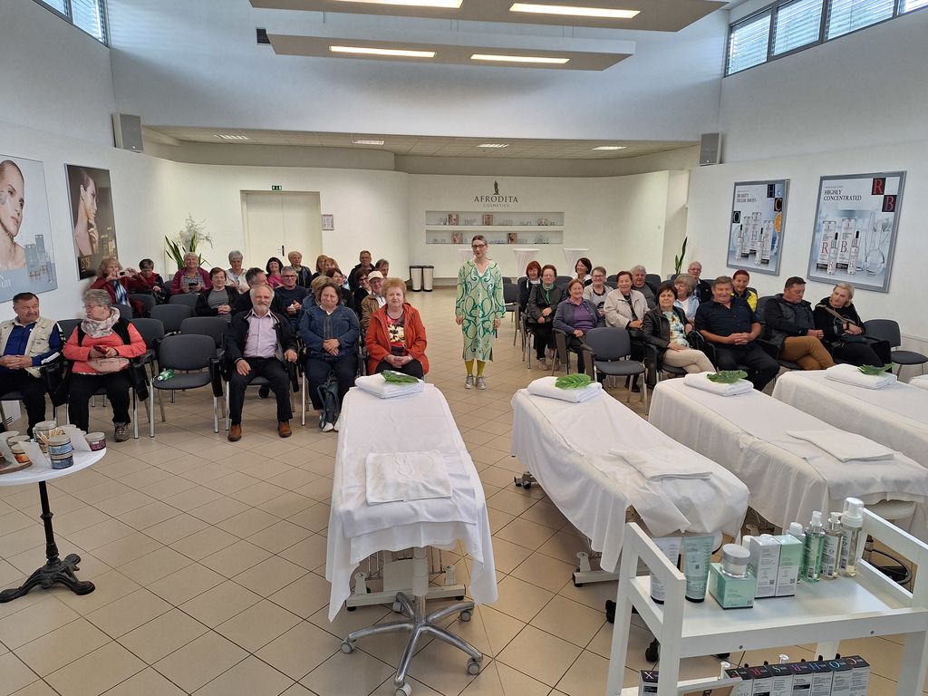 Najprej so nas prijazno sprejeli v Kozmetiki Afrodita in nam predstavili svoje podjetje. Bili smo navdušeni nad razvojem in rastjo tega našega največjega kozmetičnega podjetja. Izdelujejo okoli 800 izdelkov in jih prodajajo praktično po vsem svetu. Naslednja postaja je bila Steklarna Rogaška. Tudi tu smo si v dveh skupinah ogledali proizvodnjo od začetka v talilni peči do končnega izdelka. Z začudenjem in spoštovanjem smo opazovali od pihalcev stekla do mojstrov brušenja kristala, v nekaterih primerih celo filigranskega oblikovanja zelo posebnih izdelkov.