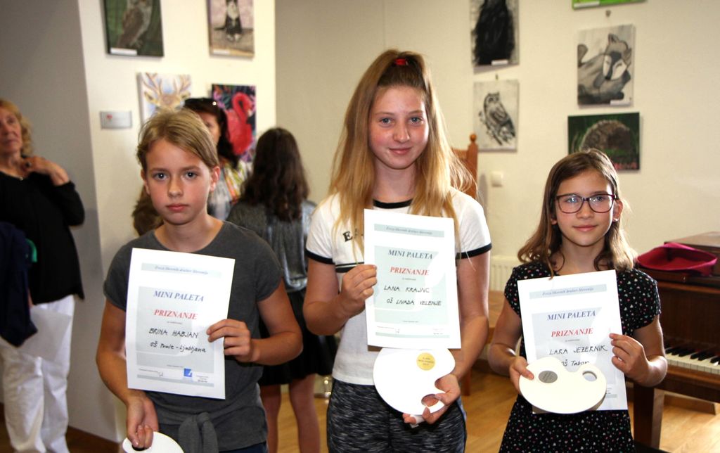 Tako je zlato mini paleto 2019 prejela Lara Krajnc iz OŠ Livada Velenje, srebrno Lara Jezernik iz OŠ Tabor in bronasto Brina Habjan iz OŠ Prule Ljubljana.