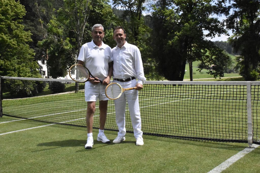 Obvezna so bila bela oblačila in leseni teniški loparji. V lepem toplem vremenu smo izpeljali turnir fiksnih dvojic s premorom za kosilo na dvorcu. Ob kosilu se je porodilo nekaj idej, med drugim ta, da bo naslednji turnir organiziran v Šentjurju.