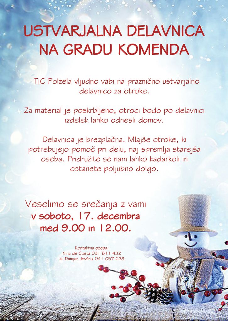TIC Polzela vljudno vabi na praznično ustvarjalno delavnico za otroke. Za material je poskrbljeno, otroci bodo po delavnici izdelek lahko odnesli domov.