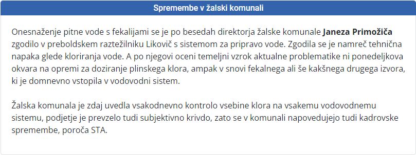 Vodo morajo prekuhavati v naseljih Šešče, Matke, Šempeter, Sp. Grušovlje, Zg. Grušovlje, Ločica ob Savinji.