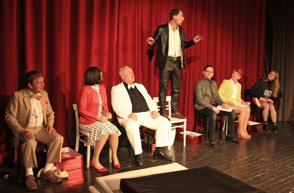 V predstavi igrajo Marko Lesjak, Andreja Lesjak, Vlasta Pšaker, Vlado Marjetič, Darja Drobnič, Ferdinand Cvetko, Živko Beškovnik in Danica Palir. »Skladno s tekstom k sodelovanju povabiš prijatelje, za katere meniš, da bi določeno vlogo suvereno odigrali. Krasno je, da njihova vloga sovpada z načeli njihovih osebnih pogledov na življenje. Potem jim je treba manj igrati,« je še povedal režiser. Večino izkušenih igralcev imamo v domači gledališki skupini KUD Polzela. Če se morda zgodi, da za kakšno vlogo ni kandidata, Jeršič poprosi katerega izmed kolegov iz drugega ljubiteljskega gledališča. Pri tej predstavi se jim je kot gost pridružil izkušen ljubiteljski igralec Živko Beškovnik iz gledališča Zarja Trnovlje - Celje. Celotna ekipa že komaj čaka, da svoj zadnji aktualni gledališki projekt predstavi širši javnosti. Po premieri imajo že dogovorjena nekatera gostovanja. Želijo pa si, da bo predstava aktivna tudi še prihodnje leto.