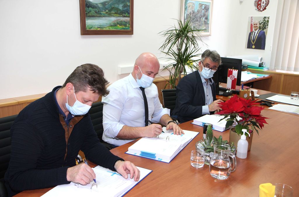 Na sliki: Župani (z leve proti desni): Jože Kužnik, Tomaž Žohar in Janko Kos ob podpisu pogodbe za izgradnjo projekta.