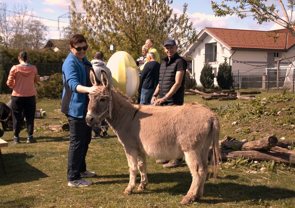 Spoštovanje, srčnost in povezanost so vrednote, ki so nas v petek, 18. aprila 2025, združile v Društvu za zaščito konj in ostalih živali. Skupina uporabnikov Centra za varstvo in delo Golovec Celje je v prijetnem in sproščenem vzdušju skupaj z živalmi preživela nepozaben dan, poln ustvarjalnosti in topline. Uporabniki so z veliko veselja in vneme barvali velikonočni pirh velikosti kar 1,25 metra ter pisane ptičje hiške in manjše pirhe.