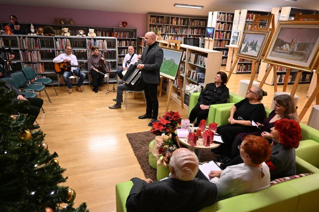 Ob odprtju razstave smo spregovorili o ustvarjalnosti vseh generacij. Pogovor sem vodila knjižničarka Lea Felicijan, poleg obeh avtorjev so sodelovale dolgoletna ravnateljica, pedagoginja in vizionarka Marijana Kolenko, vodja likovne sekcije KUD Polzela Sonja Jezernik ter vodja Medgeneracijskega centra Prebold Mirica Reberšek. Večer je z glasbo obogatila Jasmina Čulk Škoda s prijatelji iz glasbenega sestava folklorne skupine Kobula Kulturnega društva Petrovče.