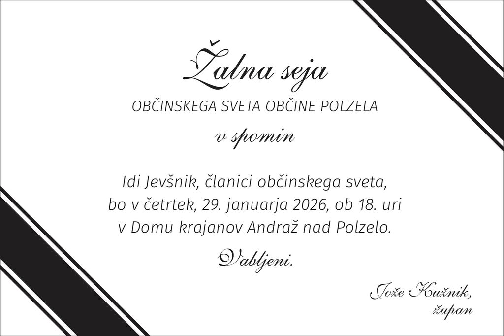 Žalna seja bo v četrtek, 29. januarja 2026, ob 18. uri v Domu krajanov Andraž nad Polzelo.